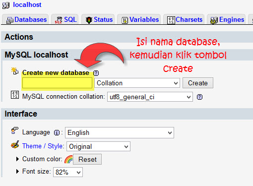 Dan langkah berikutnya adalah kita create database di phpmyadmin seperti gambar di bawah ini :