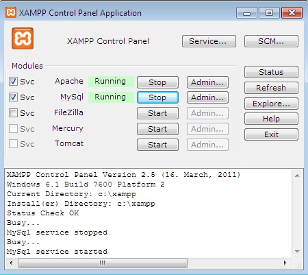 Setelah itu akan muncul jendela Xampp control panel dan klik Start seperti tampilan dibawah ini :